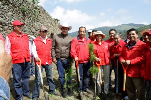 María Guadalupe Monter Flores, secretaria de Turismo y vicepresidenta del Gabinete Regional V bis, Otumba, encabezó la jornada de reforestación del Cerro Alto y de la Hacienda de Xochihuacán, en el Ejido de Otumba, de este municipio, en el marco del programa Y tú qué le vas a regalar a México, que forma parte de las acciones, obras y festejos para conmemorar el Bicentenario de la Independencia de México y el Centenario de la Revolución Mexicana.