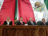 Durante este acto solemne, el mandatario mexiquense está acompañado del rector de la UNAM, José Narro, el presidente de la Junta de Coordinación Política del Congreso, Ernesto Nemer, entre otras personalidades.