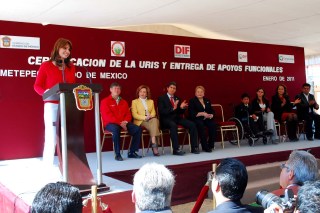 En su mensaje, Ana Lilia Herrera Anzaldo, presidenta municipal de Metepec, destacó la importancia de la certificación y rehabilitación de la URIS, que requirió una inversión de casi 400 mil pesos, la cual ofrece en sus espacios una sala multisensorial de atención a niños con discapacidad, única en el Valle de Toluca.
