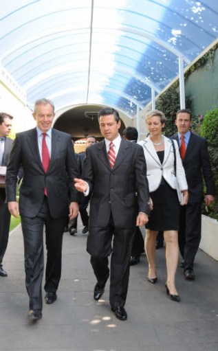 El gobernador del estado de México, Enrique Peña Nieto se reunió la tarde de este miércoles con el ex primer ministro de Gran Bretaña, Tony Blair en las oficinas de representación de la entidad mexiquense ubicadas en el Distrito Federal.