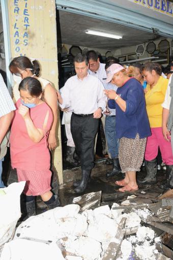 El gobernador realizó un recorrido por la zona dañada, donde ingresó a varias casas afectadas, platicó con los damnificados y expresó que se les proporcionará la ayuda necesaria para que recuperen sus bienes materiales perdidos por la inundación.