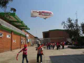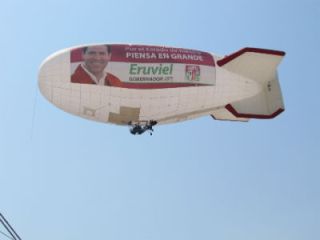 Una vez que concluyó el mitin de campaña de Eruviel Ávila Villegas en la explanada de Valle de Chalco, un zeppelín con el rostro del candidato de la coalición “Unidos por ti” impreso en el costado, cruzó el cielo de este municipio sorprendiendo así a los habitantes.