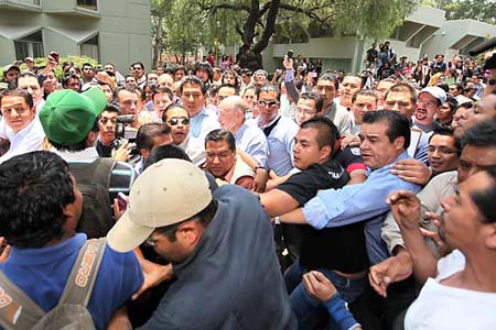 Esa misma semana, el 26 de mayo, en el municipio de Texcoco, entre 10 y 15 simpatizantes de la causa del Sindicato Mexicano de Electricistas (SME) arrojaron decenas de huevos al autobús del candidato panista, por lo que su equipo de seguridad lo resguardo en otro vehículo que utiliza gente de su campaña.