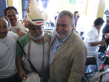 A diferencia de Luis Felipe Bravo Mena, a quien integrantes del SME le han boicoteado algunos eventos donde se ha presentado, con Encinas Rodríguez comparten saludos y sonrisas.