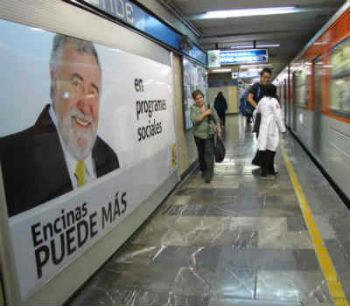 En cuanto arrancó la campaña, anuncios del candidato de la coalición PRD, PT y Convergencia, al gobierno del estado de México, Alejandro Encinas, aparecieron en las estaciones y vagones del Sistema de Transporte Colectivo Metro (STC).