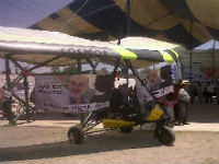 Luis Felipe Bravo Mena, candidato del PAN a la gubernatura mexiquense ya está en el cielo, esto debido a que hace un momento se elevó una nave ultraligero con dos imágenes del abanderado panista en el municipio de Melchor Ocampo.