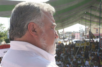 Al presentar parte de su plataforma electoral ante unas 300 personas, Encinas insistió en su plan de austeridad en caso de ser gobernador y dijo que «a ver si eso también nos lo copia Eruviel», a quien calificó de «candidato piratita», en relación con la tarjeta del priísta llamada la Efectiva, que simula a la Cumplidora del perredista.