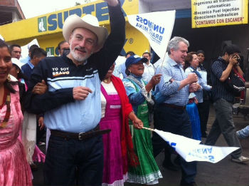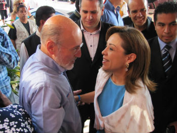 Luis Felipe Bravo Mena, candidato del Partido Acción Nacional a la gubernatura del estado de México estuvo acompañado durante su gira proselitista de este viernes por dos aspirantes a la candidatura presidenciable del blanquiazul, la diputada Josefina Vázquez Mota y el senador Santiago Creel.