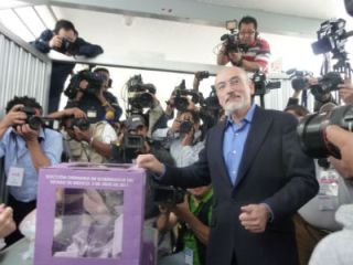 El candidato del Partido Acción Nacional (PAN) a la gubernatura del estado de México, Luis Felipe Bravo Mena, emitió su voto al filo de las 11:15 horas en el municipio de Naucalpan de Juárez, sitio donde reside.
