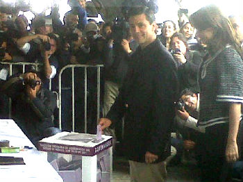 Peña Nieto acudió a la casilla acompañado de su esposa Angélica Rivera de Peña. Minutos antes de emitir su voto, ambos saludaron a algunos de los vecinos del lugar.