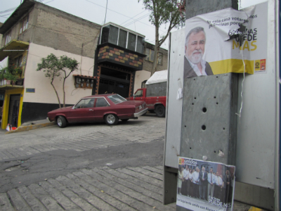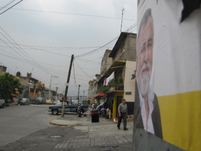 Y es que el ex abanderado del PRD, PT y Partido Convergencia empleó hojas de papel bond con su nombre, partidos y rostro impreso en cada uno de ellos, los cuales fueron adheridos a postes de luz, teléfonos públicos y paredes.
