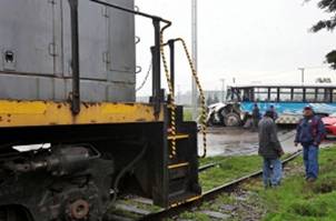 Ocho personas lesionadas fue el saldo que dejó el choque de un camión de pasajeros de la línea Valle de Toluca contra la locomotora 2080 de la empresa Kansas City Southern, que alrededor de las 08:50 horas de esta mañana realizaba maniobras para ingresar a una empresa de la zona industrial de Paseo Tollocan, a la altura de la avenida Comonfort.