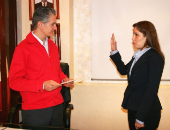 Alfredo Del Mazo Maza, alcalde de Huixquilucan, tomó protesta a Bertha Alicia Casado Medina como nueva titular de la Tesorería Municipal.