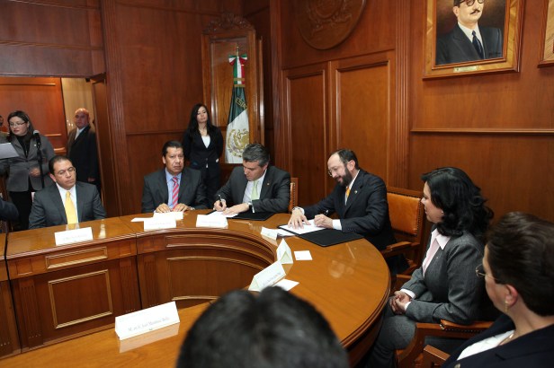 Para impulsar la vinculación entre los sectores académico y empresarial, realizar diagnósticos empresariales y estudios sobre indicadores de competitividad, además de brindar a los industriales asesorías y efectuar análisis sectoriales, a través de las incubadoras universitarias, el rector de la Universidad Autónoma del Estado de México, Eduardo Gasca Pliego, y el consejero presidente del Consejo Coordinador Empresarial mexiquense, Francisco Alberto Cervantes Díaz, signaron un Convenio General de Colaboración.