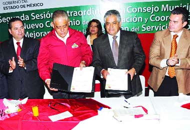 Ante la presencia de los dirigentes de más de 30 organizaciones del Transporte Público, encabezado por Sergio Lara Reyna, Barrera Velázquez subrayó el interés mostrado, en todo momento, por el Gobernador Eruviel Ávila Villegas, por la signatura de este convenio, ya que es único en el Estado de México y que también se pondrá en práctica en otros municipios de la entidad.