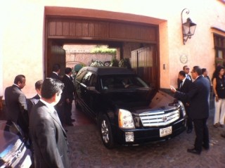 El cuerpo del ex presidente Miguel de la Madrid es trasladado en una carroza a Palacio Nacional, escoltado por varios autobuses, en los que viajan familiares y amigos.