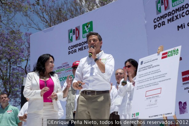 En presencia del gobernador de Aguascalientes, Carlos Lozano de la Torre y de la alcaldesa de la capital hidrocálida, Lorena Martínez, Peña Nieto indicó que esta campaña es de unidad para México y debe ser para los mexicanos una fiesta de la democracia, por lo que en esta competencia democrática tiene muy claro lo que se propone hacer, que es servirle a la población y darle resultados a los mexicanos.
