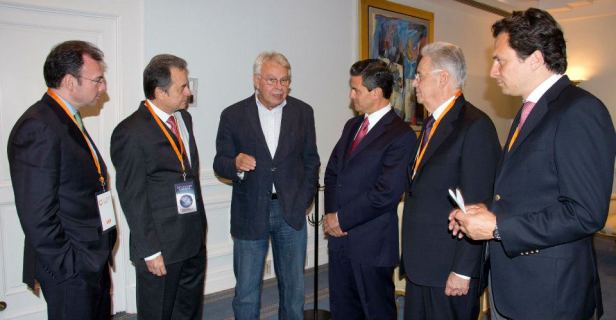 En presencia de Fernando Herique Cardoso, ex presidente de Brasil; Felipe González, ex jefe de Gobierno español; Paul Martin, ex Ministro Canadá; Eric Smith, presidente Ejecutivo de Google; George Yeo, ex ministro de la República de Singapur y Ping Chen, profesor de Economía y Finanzas de la Universidad de Pekín; Enrique Peña Nieto abundó que también compartió las 10 grandes acciones que habrá de impulsar para que México crezca económicamente, entre las que esta evidentemente lograr la apertura energética dentro de la industria petrolera del país».