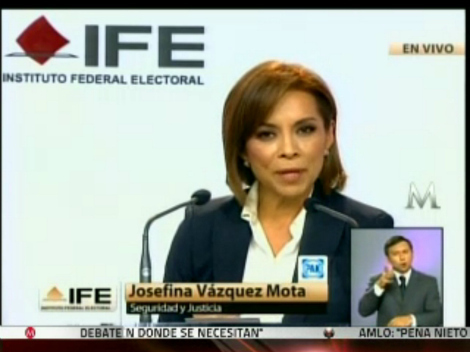 Ciudad de México • Al cierre del debate, la candidata del PAN, Josefina Vázquez Mota, dijo que el 1 de julio con el voto se decidirá si se quiere que continúe la paz y el cumplimiento de la ley y la estabilidad.
