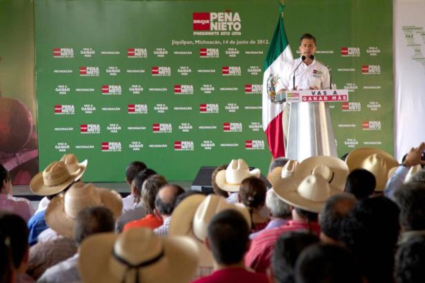 Fiel a su oferta política, ante habitantes de la región de la Ciénega michoacana, Enrique Peña Nieto firmó compromisos de campaña y enumeró, por ejemplo, recuperar las márgenes del Río Cupatitzio, la modernización de la carretera Uruapan-Zamora y la construcción de una planta de tratamiento de aguas residuales para el municipio de Uruapan.