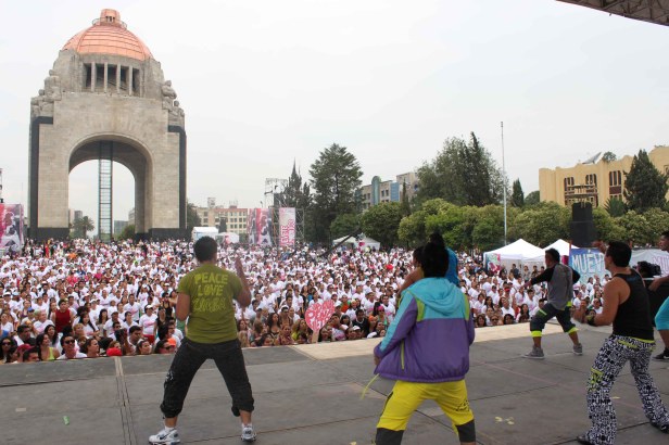 Más de ocho mil personas, en su mayoría jóvenes, participaron en una mega clase de zumba que realizó el Partido Revolucionario Institucional en la explanada del Monumento a la Revolución.