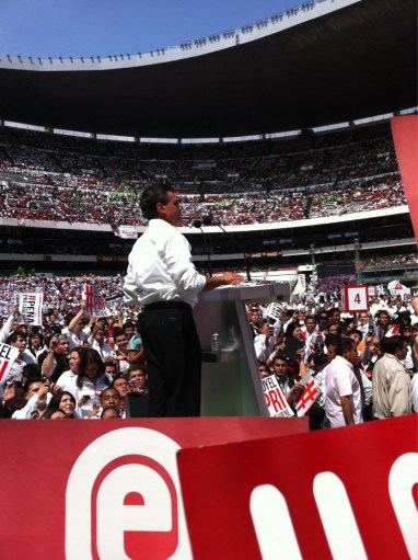 Durante su cierre de campaña en el Estadio Azteca de la Ciudad de México, el abanderado del tricolor pidió no confiarse y redoblar el paso para asegurar “el cambio de rumbo” que permita a México salir del rezago social y de la violencia, que lo ha aquejado en los últimos años.