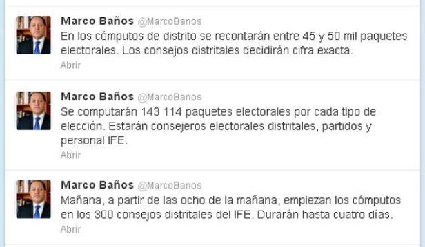 Este proceso durará hasta cuatro días, anunció Marco Baños, consejero del IFE a través de su cuenta de Twitter.