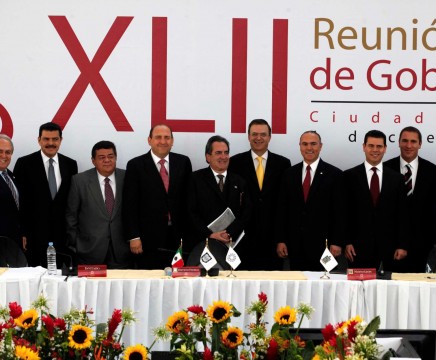 La reunión, en la que se celebran los 10 años de existencia de la Conago, tiene lugar a poco más de cuatro meses de que termine el gobierno de Felipe Calderón y en medio de la pugna judicial por los resultados electorales del pasado primero de julio.