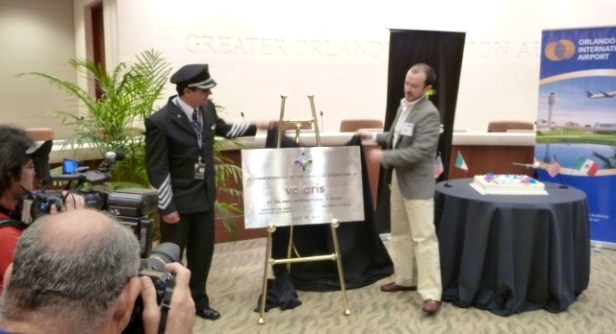 México DF, 15 de julio de 2012.- Volaris, la línea aérea con las tarifas y promociones más atractivas de México, inició ayer operaciones de la nueva ruta Ciudad de México-Orlando, inaugurando así su primera estación en el estado de Florida, lo que representa un importante crecimiento en su gama de destinos dentro de la Unión Americana.