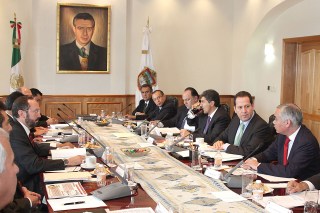 Con la finalidad de identificar estrategias para la mejora de la administración pública y el impulso del desarrollo tecnológico en la entidad, en beneficio de todos los mexiquenses, el gobernador del Estado de México, Eruviel Ávila Villegas, acompañado por integrantes de su gabinete, se reunió con el rector de la Universidad Autónoma del Estado de México, Eduardo Gasca Pliego, quien estuvo acompañado por titulares de las diferentes áreas que conforman la Administración Central de la institución educativa.