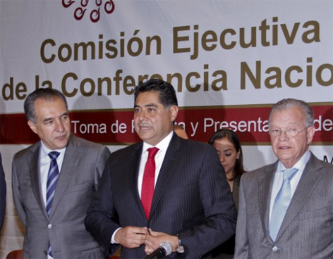 México, DF. Después de una reunión de la Conferencia Nacional de Gobernadores (Conago), los gobernadores priistas Francisco Olvera, de Hidalgo; y Jorge Herrera, de Durango; además del panista Marco Antonio Adame, de Morelos; rechazaron la propuesta de Andrés Manuel López Obrador de anular las elecciones y nombrar a un presidente interino.