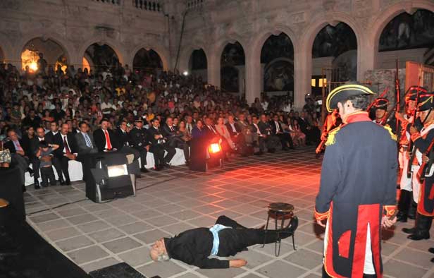 Chihuahua.- Con el fin de conmemorar el 201 aniversario de Miguel Hidalgo y Costilla esta noche se llevó a cabo la representación del fusilamiento de también llamado Padre de la Patria.