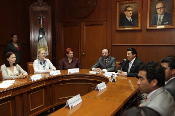 En la Sala de Rectores de la Autónoma mexiquense, acompañado por el secretario de Docencia de la institución, Felipe González Solano, Gasca Pliego recibió a los integrantes de esta delegación, que durante un mes realizarán actividades en diversos espacios universitarios; se integrarán a la dinámica académica de la UAEM mediante clases, prácticas y la participación en investigaciones sobre Latinoamérica, en los ámbitos social, económico y político.