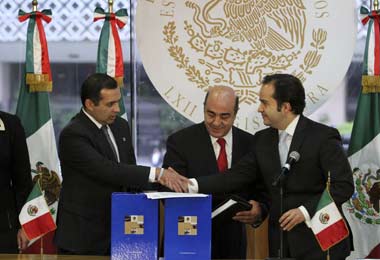 “También quiero subrayar que los integrantes del gabinete del presidente Felipe Calderón quedamos al pendiente y a disposición de los integrantes del Poder Legislativo para el desahogo del análisis de este texto que hoy se hace entrega”, expresó.