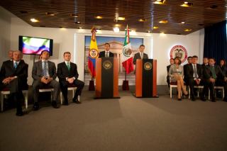 Subrayó su voluntad política para hacer aún más sólida la relación de hermandad entre México y Colombia, y se manifestó convencido de que así se podrá detonar económicamente un gran potencial para el desarrollo de sus pueblos y para competir con otros bloques en el orden mundial.