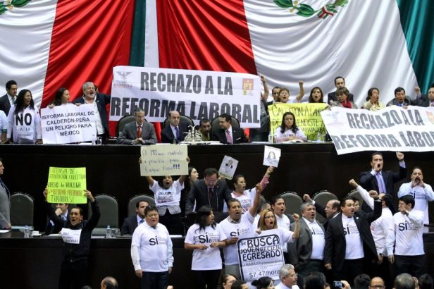 El legislador se vio impedido para hablar desde su lugar, por diputadas del Partido de la Revolución Democrática (PRD), quienes tomaron la tribuna en oposición a dicha reforma.