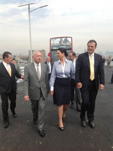 Acompañado de su esposa, Rosalinda Bueso y del presidente de OHL, José Andrés de Oteyza, el mandatario capitalino destacó el tiempo record en que se ha construido esta obra-20 meses-en comparación con los segundos pisos de la anterior administración que llevaron más de dos años.