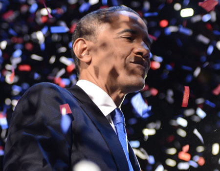 Obama regresa a Washington el miércoles tras celebrar la reelección con miles de partidarios en Chicago en las primeras horas de la madrugada.