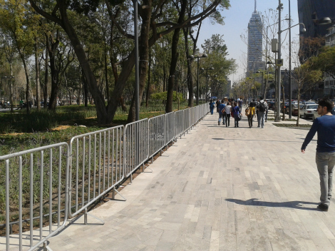Desde las 7 de la mañana de este martes el acceso a la nueva Alameda Central es restringido y solo es por las cuatro esquinas que forman las calles Juárez, Doctor Mora, Ángela Peralta y Avenida Hidalgo.