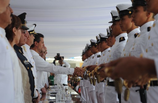 En presencia del gobernador del estado, Javier Duarte de Ochoa, el Gabinete Legal, altos mandos de las fuerzas armadas y representantes de los tres órdenes de Gobierno, el Presidente de la República señaló que ante los retos que se han vivido como Nación, los marinos de México siempre han estado dispuestos a atender el llamado de su país; «su conducta patriótica y valor a toda prueba, hacen de la Armada una de las instituciones más respetadas, admiradas y queridas por la sociedad», expresó.