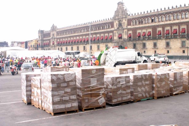 Hasta el momento, el GDF suma más de 600 toneladas de apoyo, de las cuales ayer el Jefe de Gobierno, Miguel Ángel Mancera, supervisó la recepción de 420.