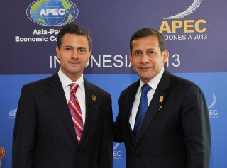 En el marco de la Reunión de Líderes de APEC, el Presidente Peña Nieto también sostuvo un encuentro con el Presidente de Perú, Ollanta Humala, con quien dialogó brevemente sobre distintos temas de interés mutuo para ambas naciones, y sobre el desarrollo de los trabajos del Foro de Cooperación Económica 2013.