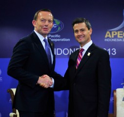 Por otra parte, durante su reunión con el Primer Ministro de Australia, Tony Abbott, el Presidente Peña Nieto destacó el interés de su Gobierno en intensificar la relación bilateral con esa nación, y en construir una interlocución política cercana y de mutua confianza, con el objetivo de fortalecer la agenda de cooperación.