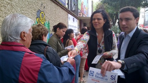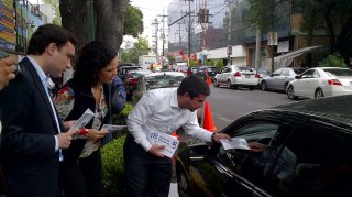 La Senadora del partido Acción Nacional, Mariana Gómez del Campo, volanteo en contra de la reforma hacendaria realizado en distintas escuelas de la colonia Del Valle de la ciudad de México.