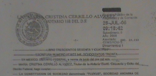 De acuerdo con la respuesta a la solicitud de información Folio 0000800035414, de la Secretaría de Agricultura, Ganadería, Desarrollo Rural, Pesca y Alimentación, en el acta constitutiva de “Fluxus” S. A. de C. V, avalada por la Notaría 158 del Distrito Federal con fecha 30 de junio del 2006, consta que los socios de dicha empresa son Ivo Gaytán Molina y Ángel Izcalli Marín Santamaría.