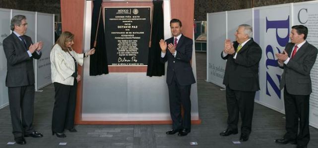 Frente al titular de Consejo Nacional para la Cultura y las Artes (Conaculta), Rafael Tovar y de Teresa y el secretario de Educación Pública, Emilio Chuayffet, el presidente Peña Nieto resaltó que Paz es el único mexicano que ha sido galardonado con el Premio Nobel de Literatura y, sin duda, el más universal de nuestros pensadores.