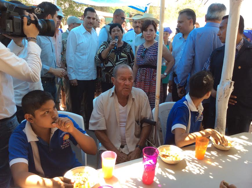 Debajo de una palapa, los menores charlan con Rosario Robles, quien les pregunta que quieren ser de grandes. Guadalupe, desde su silla de ruedas, le responde que quiere ser doctora; otros dos dicen que maestros. La titular de la Sedesol les dice que coman bien y sigan estudiando, porque esa es la base para que puedan cumplir sus anhelos.