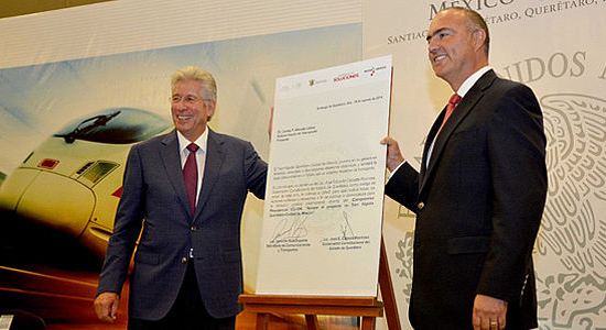 Con una inversión superior a los 40 mil millones de pesos y la creación de más de 60 mil empleos directos e indirectos, se abre una nueva época en la historia de los ferrocarriles y el transporte de pasajeros del país con el Tren México-Querétaro, afirmó el Secretario Gerardo Ruiz Esparza al firmar, junto con el gobernador de la entidad José Calzada Rovirosa las bases de licitación de esta obra, única en América.