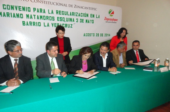 El Fondo de la Vivienda del Instituto de Seguridad y Servicios Sociales de los Trabajadores del Estado (FOVISSSTE), en coordinación con el Instituto Mexiquense de la Vivienda Social (IMEVIS) y el H. Ayuntamiento de Zinacantepec, firmaron un convenio para la Regularización de la Tenencia de la Tierra y Escrituración de un predio ubicado en la cabecera municipal de dicha demarcación, con lo que los beneficiarios de viviendas podrán acelerar sus trámites de escrituración.