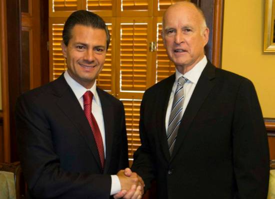 Acompañado por su comitiva de funcionarios federales mexicanos de primer nivel, el mandatario federal recordó que hace poco el gobernador Brown estuvo de visita en la Ciudad de México.